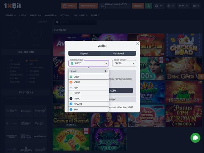 Ce qui frappe d'emblée, c'est la liste vraiment complète des cryptomonnaies acceptées par ce casino en ligne pour des dépôts et des retraits rapides et sans tracas. Ainsi, que vous restiez fidèle au Bitcoin ou que vous préfériez les stablecoins comme l'USDT, ce site répondra à vos attentes.