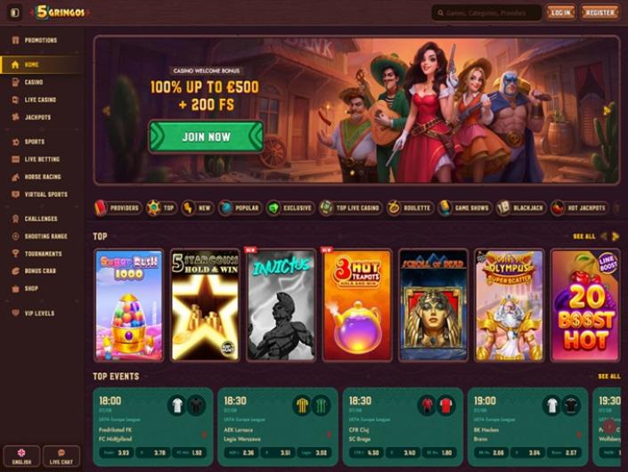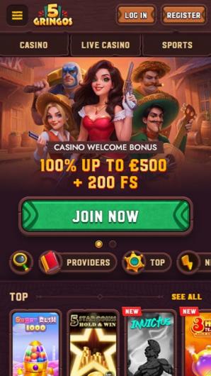5Gringos est classé 219 sur 427 casinos passés en revue avec une note de 2.8 sur 5 après 31 votes et il a6636 machines à sous proposées par 1x2gaming, Amatic Industries, BetSoft et 169 autres avec une note moyenne de 3.7 sur 5 après 191442 votes.