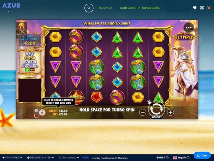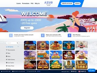 Azur Casino est classé 277 sur 393 casinos passés en revue avec une note de 2.6 sur 5 après 34 votes et il a5238 machines à sous proposées par 1x2gaming, 2by2 Gaming, BetSoft et 109 autres avec une note moyenne de 3.8 sur 5 après 159830 votes.