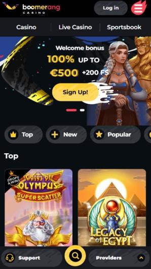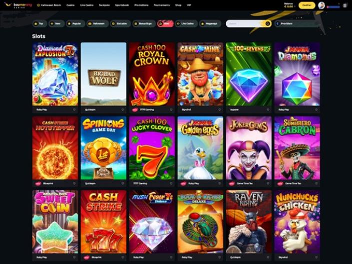 Boomerang Casino est classé 137 sur 393 casinos passés en revue avec une note de 3 sur 5 après 64 votes et il a7129 machines à sous proposées par 1x2gaming, 2by2 Gaming, Amatic Industries et 183 autres avec une note moyenne de 3.9 sur 5 après 200687 votes.