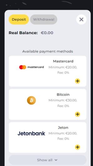 - Les dépôts et les retraits seront effectués par la méthode choisie par le joueur.