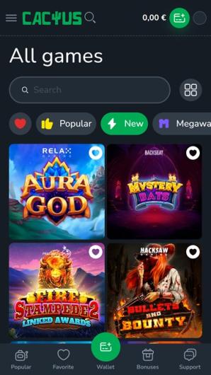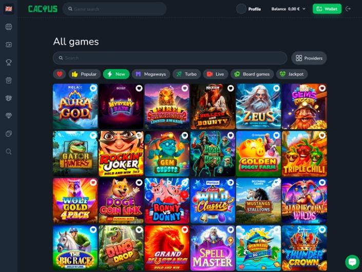 Ce portefeuille très diversifié est constamment enrichi par les meilleurs développeurs du secteur, ce qui garantit un choix toujours varié. Hacksaw Gaming, Relax Gaming, Nolimit City, Thunderkick, Amatic Industries, Gamzix, REEVO, Ezugi et Gamebeat ne sont que quelques-uns des nombreux fournisseurs avec lesquels le Casino Cactus collabore.