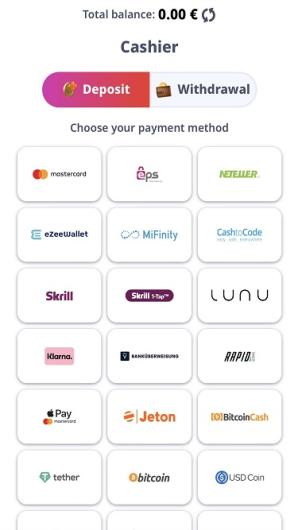 En ce qui concerne les paiements, vous trouverez une variété d'options de paiement rapide. Cela inclut les cryptomonnaies comme le Bitcoin. Vous trouverez également une ou deux méthodes de paiement spécifiques à certaines régions. Que vous jouiez depuis l'Allemagne, la Hongrie, l'Irlande ou tout autre pays accepté, les dépôts et les retraits ne poseront aucun problème.
