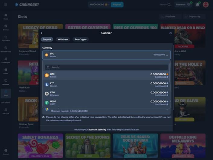 Au début, nous avons promis d'examiner de plus près les options de dépôts/ retraits bancaires, alors voyons cela maintenant. CasinoBet est avant tout un casino crypto. En d'autres termes, la meilleure flexibilité en matière de dépôts/ retraits bancaires est réservée aux joueurs qui transfèrent leur argent via des méthodes et des devises numériques. Toutes les cryptomonnaies populaires sont prises en charge, ce qui rend les transactions rapides et modernes. Mais le fait de n'accepter que les cryptomonnaies est-il vraiment un avantage, ou cela exclut-il certains joueurs ?