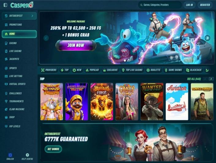 Caspero Casino est classé 103 sur 393 casinos passés en revue avec une note de 3.1 sur 5 après 5 votes et il a5780 machines à sous proposées par 1x2gaming, Amatic Industries, Ash Gaming et 156 autres avec une note moyenne de 3.9 sur 5 après 146112 votes.