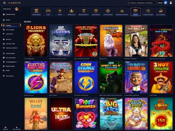Le lobby des jeux du casino Cazeus affiche clairement tous les jeux disponibles, ce qui permet aux visiteurs de choisir facilement en fonction du type de jeu et de la catégorie de casino ou de casino en direct. La catégorie des machines à sous sort du lot, car elle est probablement la plus importante avec ses milliers de jeux. Vous trouverez un large éventail de thèmes, notamment les livres, les fruits, les pierres précieuses, les richesses, les temps anciens, les rois et les reines et bien d'autres encore !