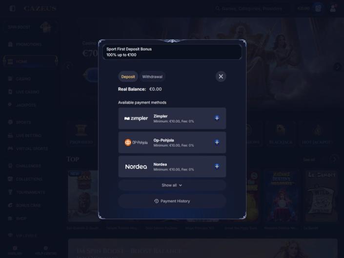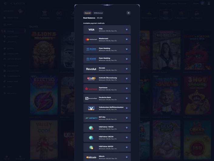 De plus, pour ceux qui préfèrent les options traditionnelles, il y a les principales devises fiduciaires telles que le dollar américain, l'euro, le franc suisse et bien d'autres. Cette sélection variée permet à chaque joueur de trouver le moyen idéal de gérer ses fonds au Casino Cazeus, que ce soit par le biais de