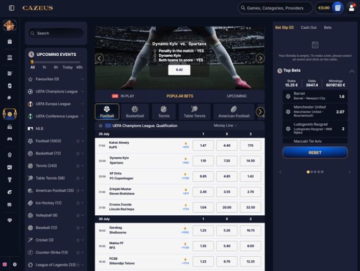 Le monde des jeux en ligne a évolué au-delà des offres traditionnelles des casinos comme les machines à sous, les jeux de table et les divertissements en direct. De nos jours, il est de plus en plus fréquent que les casinos en ligne intègrent une section dédiée aux paris sportifs. Répondre aux besoins des amateurs de paris sportifs est devenu un critère primordial pour les opérateurs, et heureusement, le casino Cazeus fait partie de ceux qui ouvrent la voie. La plateforme comprend une vaste section de paris sportifs qui offre un large éventail d'opportunités de paris quotidiens sur de nombreux sports.