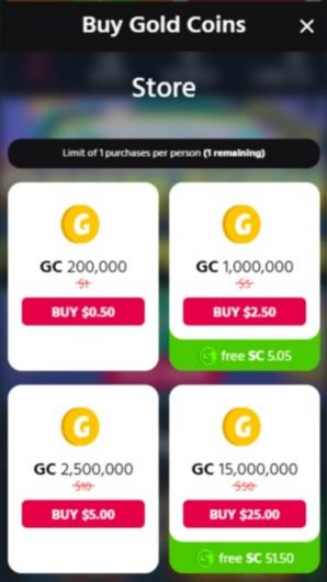 Il existe également d'autres types de pièces, appelées Sweeps Coins. Celles-ci sont offertes aux joueurs gratuitement lors de l'inscription, en tant que bonus lors de l'achat de Gold Coins, ou en jouant à des jeux à tirage au sort. Les joueurs ne peuvent pas acheter de Sweeps Coins.