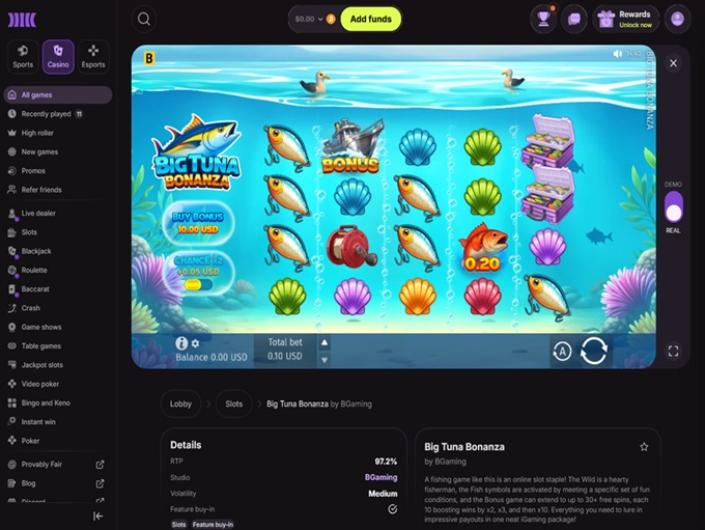 Un casino cool qui ne prend en charge que les crypto-monnaies avec beaucoup de jeux. L'inconvénient est la commission lors du retrait de fonds du casino, et le fait que dans certains jeux, comme Book of Dead, le solde du compte est donné en mBTC, ce qui augmente considérablement les enjeux auxquels vous pouvez jouer contre l'euro, et par exemple , Starburst a déjà été converti en jeu Euro au minimum 0.1e