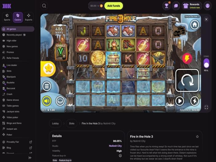 A cool casino that only supports cryptocurrencies with a lot of games. The downside is the commission when withdrawing funds from the casino, and the fact that in some games, such as Book of Dead, the account balance is given in mBTC, which significantly increases the stakes at which you can play against Euro, and for example, Starburst has already been converted into Euro play at the minimum 0.1e