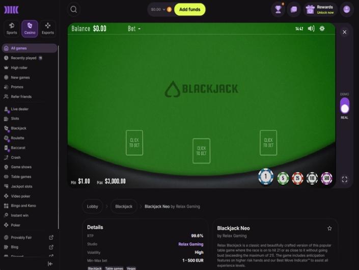 Un casino cool qui ne prend en charge que les crypto-monnaies avec beaucoup de jeux. L'inconvénient est la commission lors du retrait de fonds du casino, et le fait que dans certains jeux, comme Book of Dead, le solde du compte est donné en mBTC, ce qui augmente considérablement les enjeux auxquels vous pouvez jouer contre...