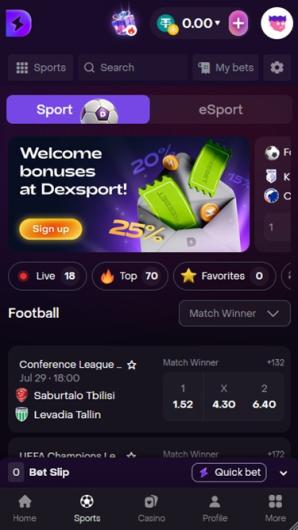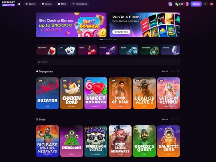 Vous ne pouvez pas vous tromper avec l'aspect classique d'un casino et Dexsport s'en tient au bon vieux fond sombre agrémenté d'icônes et de lettres colorées. Les visiteurs verront clairement les sections importantes en haut de la page et le reste des raccourcis en bas. Tout est placé de manière logique et il est facile de naviguer. Si vous souhaitez changer la langue du site web, rendez-vous dans le coin supérieur droit et sélectionnez votre langue préférée, car il y en a plusieurs.
