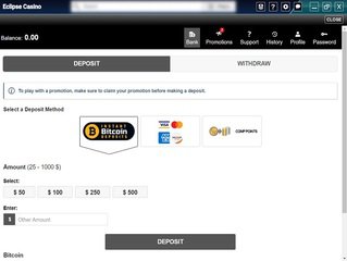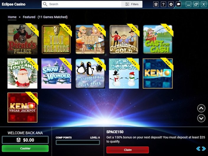 I received an email from Eclipse Casino when it first opened for $50 free. I used the code and played the games which did look incredibly nice on my tablet. I liked the look of the casino but I am not that impressed with rival casinos anymore.. They do send lots of bonuses to my email which i s a plus but I have not decided to deposit here as of yet due to Rivals limited games.