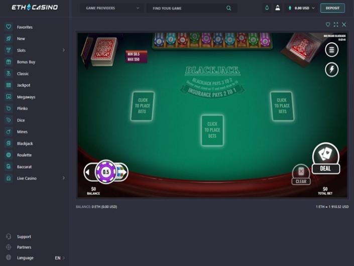 Ce que les joueurs apprécient, c'est de pouvoir choisir parmi une gamme de jeux bien diversifiée. Le Casino ETH s'est assuré de cocher cette case en incluant de nombreux genres différents, tels que les machines à sous, les dés, les mines, la roulette plinko, le baccara, le blackjack, les jeux en direct, et ainsi de suite.