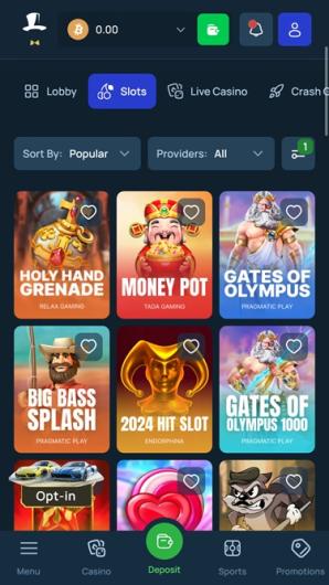 Ce casino offre une vaste sélection de jeux haut de gamme, répartis en plusieurs sous-catégories. Vous trouverez ici le plus grand choix de machines à sous de différents fournisseurs de logiciels, qui sont eux aussi divisés en sections. Parmi les titres les plus populaires figurent High Society, Jackpot Rango et Dragon Kingdom.