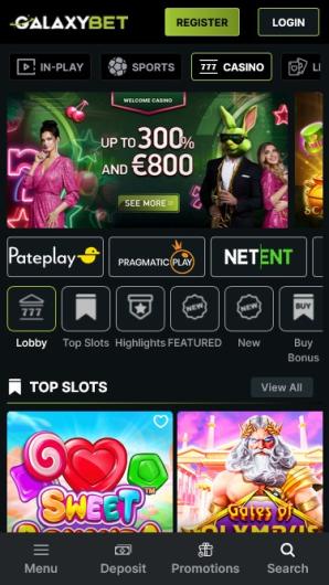 Le casino Galaxy.bet est doté d'une excellente ludothèque et d'une section séparée dédiée aux paris sportifs qui propose de nombreux événements sportifs actuels ainsi qu'une section consacrée aux E-sports, toujours très populaire.