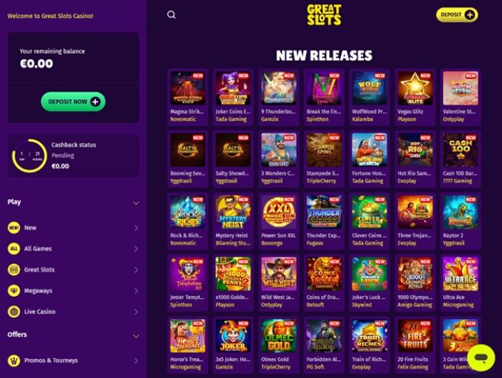 Activité Great Slots Casino