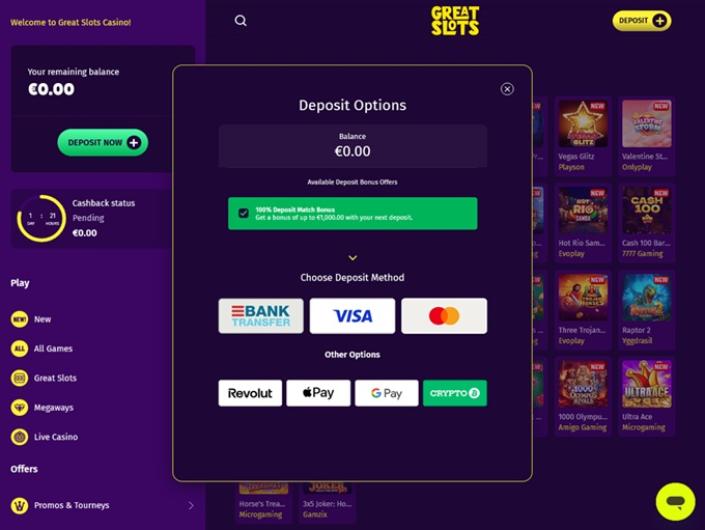 Les méthodes de paiement et les devises disponibles sont également supérieures à la moyenne et satisfaisantes pour les membres du casino. Afin de satisfaire tous ses clients, le Casino Great Slots a décidé d'inclure à la fois les monnaies fiduciaires et les cryptomonnaies. En ce qui concerne les monnaies fiduciaires, il existe deux devises principales, à savoir l'euro et le dollar américain. En réalité, les cryptomonnaies sont dominantes sur ce site et comprennent des options telles que le Ripple, le Bitcoin, le Tether, le Tron et d'autres.