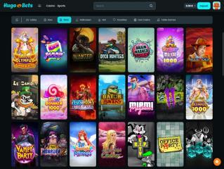 Heureusement, le Casino HugoBets se distingue par son excellente organisation. Vous trouverez un menu pratique avec des raccourcis utiles à gauche, ainsi qu'une autre liste de liens de navigation au bas de la page d'accueil. L'esthétique familière, constituée d'un fond sombre contrastant avec les couleurs vives des icônes et du texte, offre une expérience claire et attrayante.