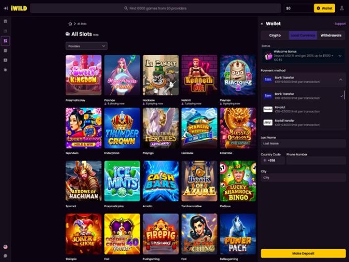 iWild Casino offers a large selection of over 8,000 games, including slots, table games, and live dealers from top providers like BetSoft and NetEnt. The site is user-friendly, and bonuses are generous, including a welcome package with up to 550% bonus and free spins. However, there are some drawbacks: withdrawals can take longer than expected, and the KYC verification process may be stringent. Additionally, the casino lacks an official gambling license, which may concern some players.