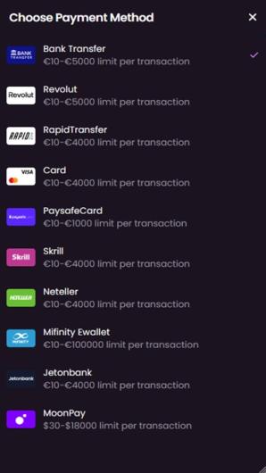 En tant que plateforme iGaming contemporaine, cette marque est équipée uniquement des options de paiement les plus récentes, comprenant des applications intelligentes, des portefeuilles cryptographiques, des cartes de débit et de crédit, ainsi que des virements bancaires. Chaque méthode bancaire est disponible pour les dépôts et les retraits, ce qui donne à chaque client la liberté de recharger son compte de la manière la plus appropriée.