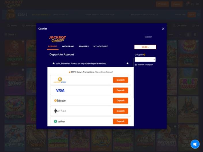 Montrer plusJackpot Capital is a standard RTG casino so you know what to expect as far as gaming choices goes. The bonuses are nothing special and like 98% of casino's bonuses, they have dauntingly high wagering requirements. They do have the advantage over many others because the hold slots tournaments and they pay out wins in a...