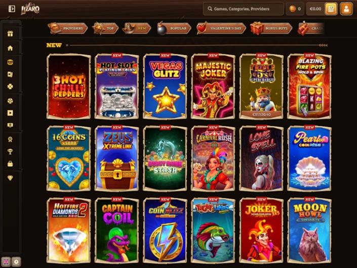 La première chose qui frappe lorsque vous arrivez sur la page d'accueil du Casino Lizaro, c'est le nombre impressionnant de fournisseurs de jeux en ligne et l'abondance de bonus et de promotions.