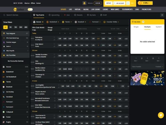 Il existe une longue liste de sports inclus, dont le football, le basket-ball, le tennis, le base-ball, la formule 1, le volley-ball, le futsal, le football américain, le snooker, le MMA, la boxe et bien d'autres encore. Les cyber-sports font également partie de l'offre et les visiteurs peuvent placer des paris sur Dota 2, Valorant, Rainbow 6, Overwatch et d'autres titres.