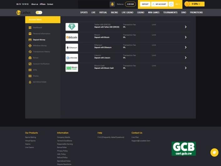 Presque toutes les devises disponibles au casino Locasbet sont des cryptomonnaies, il n'y a que deux monnaies fiduciaires qui sont l'euro et le dollar américain. Les membres du casino utilisent des pièces numériques telles que le Bitcoin, le Litecoin et plusieurs autres pour effectuer des transactions. En ce qui concerne les méthodes de paiement possibles, outre les portefeuilles de cryptomonnaies, il existe des cartes de premier plan, des portefeuilles électroniques largement utilisés et quelques autres moyens de traiter les paiements.