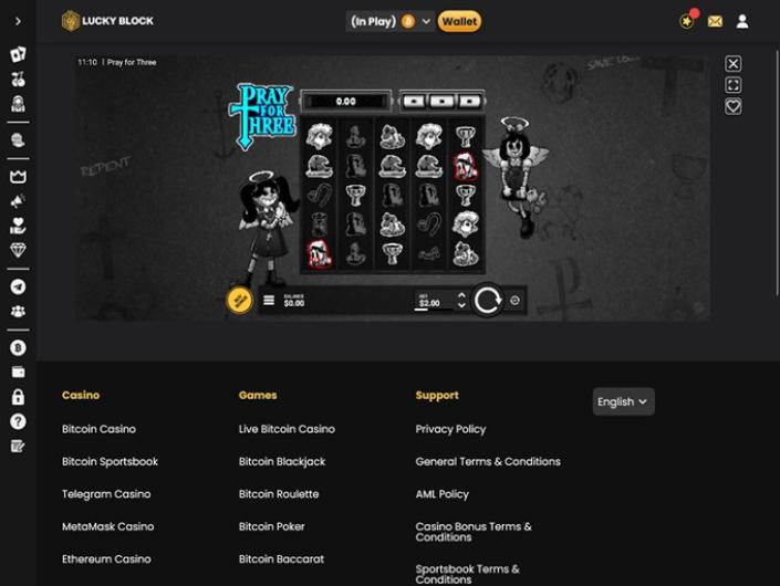 Cela dit, si vous êtes à la recherche d'une plateforme de casino crypto reconnue, esthétique et agréable à utiliser, ne cherchez pas plus loin que Lucky Block. L'apparence luxueuse de la plateforme crypto et ses fonctionnalités de pointe sont ce que ce casino semble offrir dès le départ.