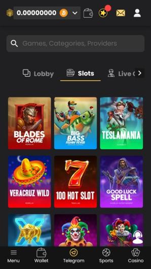 Ce casino Bitcoin privilégie la simplicité à l'extravagance, en évitant les diaporamas et les animations tape-à-l'œil. Sa conception, caractérisée par des arrière-plans gris et des boutons dorés, dégage une apparence haut de gamme sans submerger l'utilisateur.