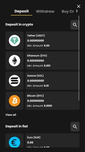 Le casino prend en charge toute une gamme de cryptomonnaies, notamment le Bitcoin, le Cardano, le Litecoin et bien d'autres encore. La configuration est simple : vous pouvez soit connecter votre portefeuille existant, soit acheter des cryptomonnaies directement sur la plateforme. Si vous choisissez d'acheter, il vous suffit d'utiliser votre carte, et le système achète automatiquement la cryptomonnaie souhaitée et recharge votre compte. Cette configuration garantit que les paris et les transactions en cryptomonnaies sont non seulement accessibles, mais également intégrés dans un cadre de jeu sécurisé.