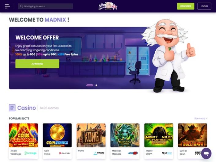 Agréé par Curaçao, le Casino Madnix se décrit comme une destination adaptée aux vrais amateurs de jeux en ligne. Doté de contenus de qualité provenant des meilleurs fournisseurs de jeux, parmi lesquels NetEnt, Play'n GO, Booongo, Red Tiger et bien d'autres encore, ce casino est un lieu conçu à la fois pour les débutants et pour ceux qui possèdent des compétences avancées, principalement en provenance de France et de Suisse, mais aussi d'autres pays.