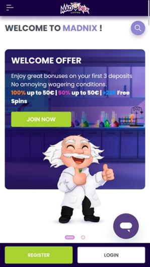 Plus que consciente que le nombre d'utilisateurs qui accèdent aux casinos en ligne via leurs dispositifs portables est en constante augmentation, l'équipe du Casino Madnix s'est assurée que la page mobile fonctionne parfaitement. Les joueurs peuvent lancer leurs jeux préférés sur leurs mobiles et tablettes, ou examiner en détail les bonus et les promotions répertoriés.