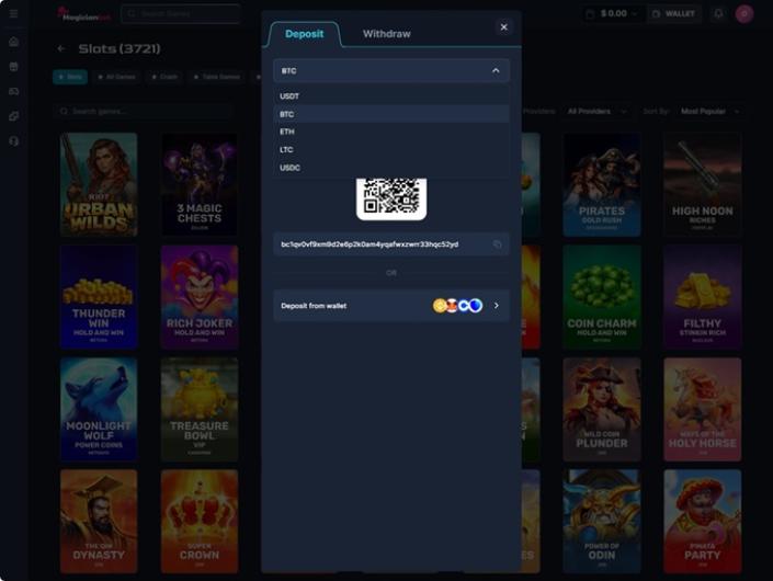 Les utilisateurs de cryptomonnaies peuvent effectuer des paiements facilement et rapidement sur le site. Dans la plupart des cas, les dépôts sont traités instantanément, et les retraits sont effectués en quelques minutes si les conditions du réseau le permettent.