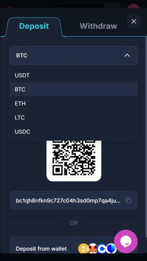 Le site accepte le BTC, l'ETH, l'USDT, le LTC, l'USDC et d'autres cryptomonnaies courantes.
