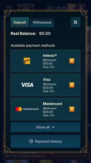 Les membres du casino peuvent choisir entre des pièces numériques et plusieurs monnaies fiduciaires traditionnelles. En outre, parmi les méthodes de paiement acceptées figurent le virement bancaire, les portefeuilles électroniques et les principales cartes.