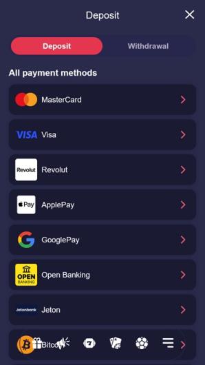 Parmi les nombreuses options bancaires que ce site propose, on trouve ApplePay, le Bitcoin, l'Ethereum, le Litecoin, le Ripple, le Jeton, le Tether, Skrill, Visa, MasterCard et bien d'autres encore.