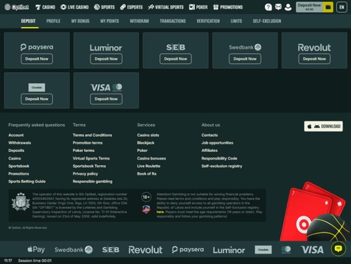 Optibet is a latvian based casino. I have made some deposits here and claimed the bonuses without any problem. They have Netent and Microgaming software and i hope they will add more in the future. They always send me promotions for deposits bonuses. The withdraws could be more faster. Overall Optibet is a good casino to play.