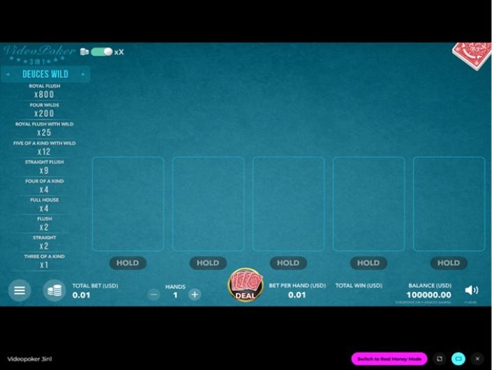 Vidéo Poker : Valets ou Mieux, Deuces Wild, Joker Poker, Aces and Faces, Double Double Bonus Poker, Dix ou Mieux, All American, Deuces and Joker, Vidéo Poker 3 en 1.