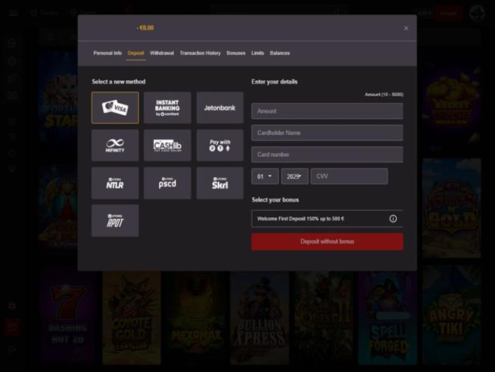 Vous pouvez jouer à tout, des machines à sous et jeux de table aux expériences immersives en direct, grâce à des développeurs de premier plan tels que Fazi, BetSoft Gaming, Pragmatic Play, Playson, Yggdrasil Gaming, AvatarUX et Peter & Sons. Vous avez le choix parmi une grande variété de titres, vous ne vous ennuierez donc jamais.