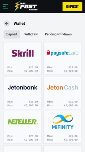 - Le montant maximal et minimal des dépôts et des retraits peut varier en fonction de la méthode de paiement choisie.