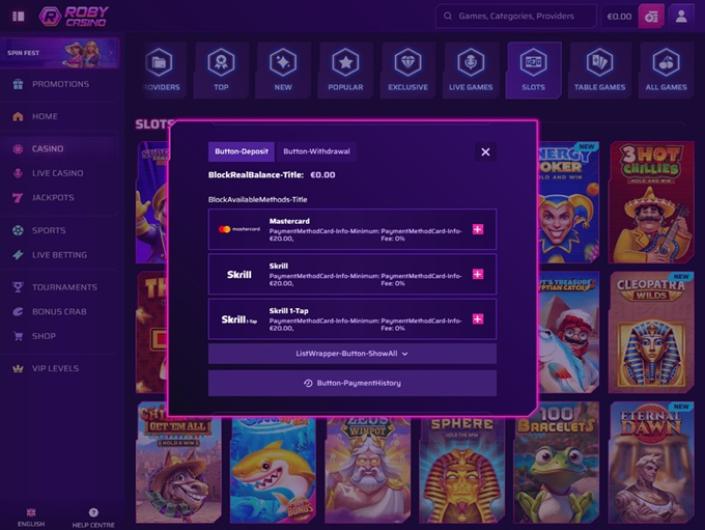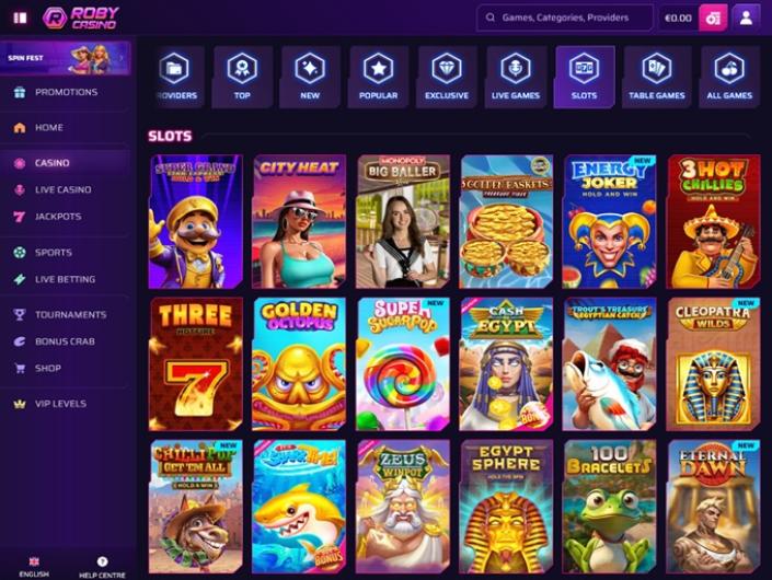 Le Casino Roby offre des milliers de jeux provenant de nombreux fournisseurs de logiciels, tous commodément organisés par catégorie dans le lobby des jeux. Plus d'une centaine d'éditeurs de logiciels ont fourni leurs produits à cet opérateur, ce qui lui confère un grand avantage. Les joueurs peuvent facilement trouver et apprécier leurs titres préférés, quels que soient leurs intérêts de jeu. L'offre la plus importante est probablement celle des machines à sous, qui compte plus de six mille options.