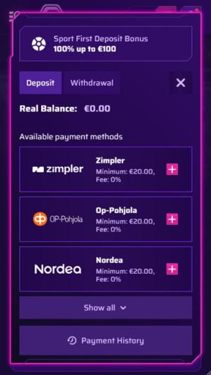 Il existe deux offres de bienvenue qui sont proposées en fonction de la raison pour laquelle une personne s'est inscrite. L'une est destinée aux joueurs de casino et l'autre aux parieurs sportifs. Le montant minimal du dépôt est le même pour les deux bonus.