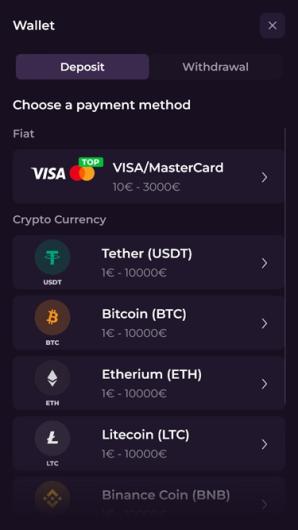 De plus, l'opérateur prend en charge les options fiduciaires traditionnelles telles que l'euro et le leu roumain, et accepte les méthodes de paiement standard telles que MasterCard et Visa, les virements bancaires et l'utilisation d'un portefeuille cryptographique.