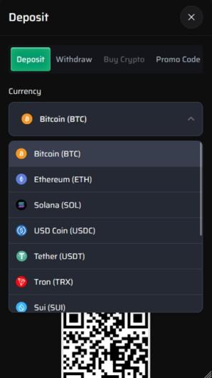 La marque est presque entièrement un casino crypto, une seule devise fiduciaire étant disponible, à savoir le dollar américain (USD). Les autres options comprennent toutes sortes de monnaies numériques, du célèbre Bitcoin aux variantes plus récentes comme le Tron et le Solana. Le mieux pour chaque individu est de se renseigner sur les blockchains et les monnaies potentielles, puis d'en choisir une en fonction de ses préférences personnelles.