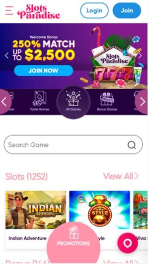 Le Casino SlotsParadise propose une excellente sélection de machines à sous en ligne, une multitude de bonus et de promotions spéciales, ainsi qu'un design lumineux et joyeux qui donne vraiment l'impression d'être dans une destination de vacances.