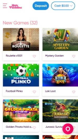 Des milliers de machines à sous en ligne - comme le nom du casino l'indique, constituent son produit principal - et des centaines de jeux de table, de cartes à gratter, de variantes de vidéo poker et de crash games, entre autres, composent le lobby de SlotsParadise. Le site propose également des jeux de casino en direct, mais ne vous attendez pas à en trouver beaucoup. Cependant, il existe des variantes des jeux de table les plus populaires et d'autres titres captivants qui méritent que l'on y consacre un peu de temps et d'argent.