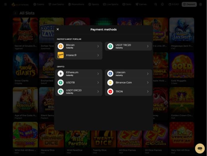 SlotStake permet aux joueurs de jouer et de parier sur des événements sportifs en utilisant des cryptomonnaies, ce qui simplifie considérablement la vie et les paiements. N'oubliez surtout pas de bien vérifier l'adresse lorsque vous effectuez un dépôt, car les transactions en cryptomonnaies sont irréversibles et vous ne pourrez pas récupérer votre argent s'il a été envoyé à une mauvaise adresse.